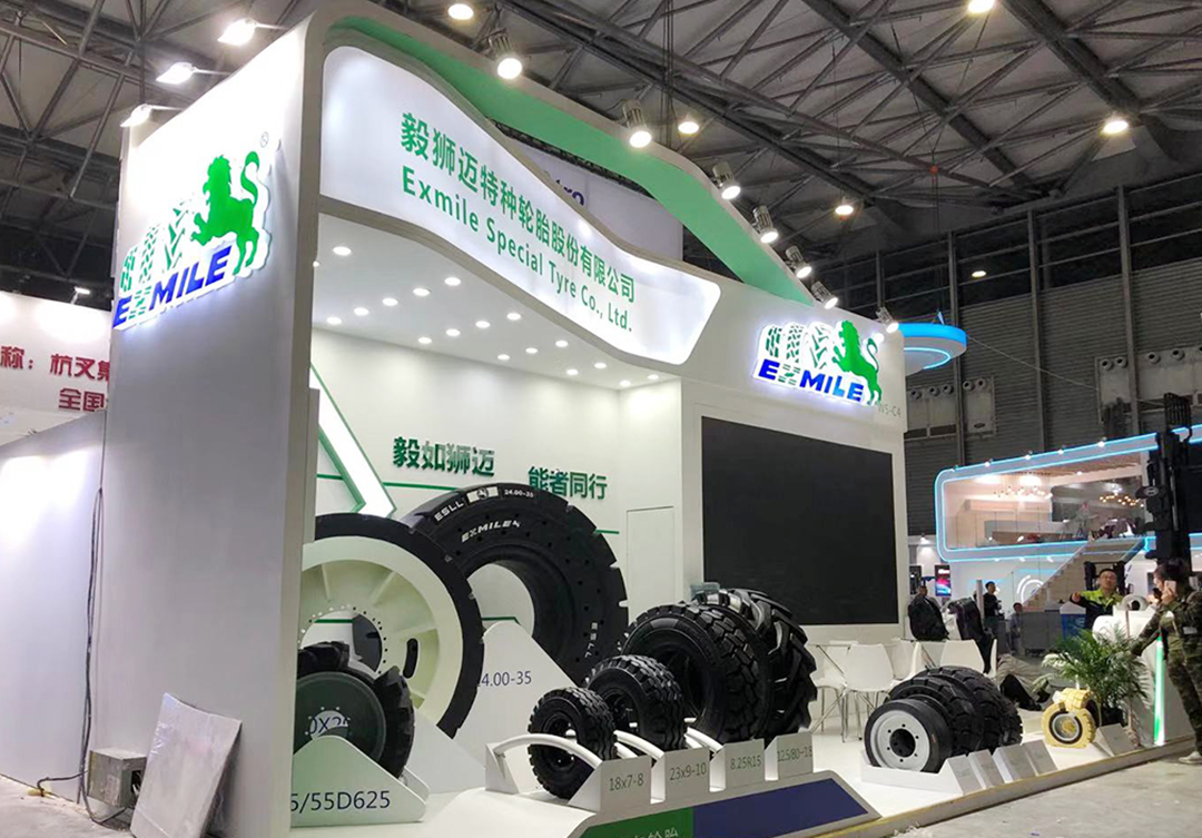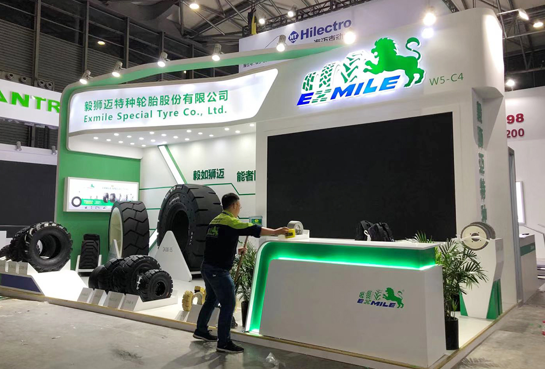 本屆展會卡爾文森為毅獅邁特種輪胎提供展覽服務,結合毅獅邁品牌形象,設計了白綠色調的展臺,將毅獅邁產品直觀的展現給參觀者。卡爾文森憑借簡約大氣的設計風格,優質高效的搭建服務,通過優質展臺將毅獅邁品牌形象有效宣傳。